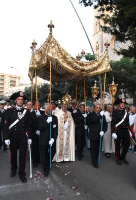 Torna a Lecce, dopo due anni di sospensione a causa della pandemia di Covid-19, la processione che percorrerà le vie della città in occasione della solennità del Santissimo Corpo e Sangue del Signore (Corpus Domini). Sarà mons. Michele Seccia, arcivescovo di Lecce, a presiedere la messa delle ore 19 nella parrocchia di Sant’Antonio a Fulgenzio, al termine della quale inizierà la processione alla quale parteciperanno anche i vescovi Cristoforo Palmieri e Luigi Pezzuto, i sacerdoti che operano in città, le confraternite e le associazioni e i movimenti cattolici. Il corteo passerà per le principali vie di Lecce, via Monte San Michele, piazza Mazzini, via Trinchese, piazza Sant’Oronzo, corso Vittorio Emanuele fino a piazza Duomo, dove mons. Seccia concluderà la cerimonia con la benedizione eucaristica.