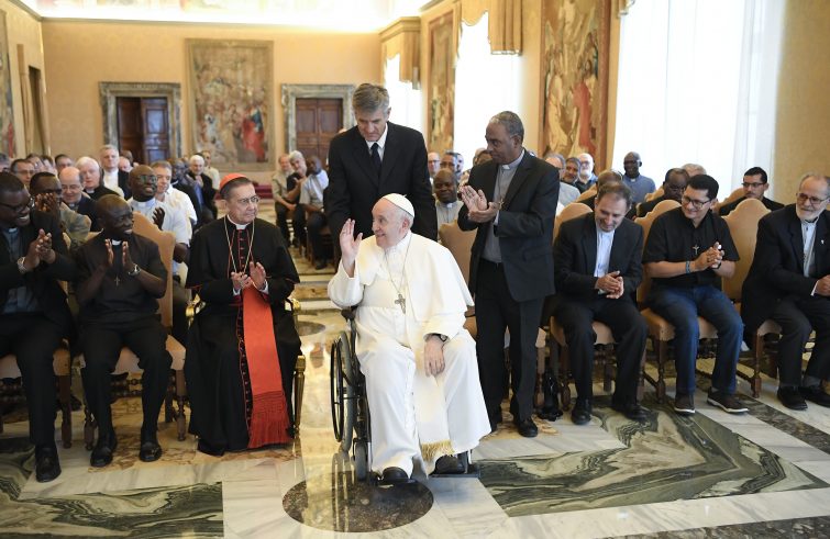 “Viviamo questo nostro incontro nella prospettiva e nello spirito del mistero del cuore di Cristo, a cui è legato il carisma di San Daniele Comboni. Ci orientano in questa direzione anche il tema e il motto del vostro Capitolo: ‘Io sono la vite, voi i tralci. Radicati in Cristo insieme a Comboni’. In effetti la missione – la sua fonte, il suo dinamismo e i suoi frutti – dipende totalmente dall’unione con Cristo e dalla forza dello Spirito Santo. Gesù lo ha detto chiaramente a quelli che aveva scelto come ‘apostoli’, cioè ‘inviati’: ‘Senza di me non potete far nulla’ (Gv 15,5). Non ha detto: ‘potete fare poco’, no, ha detto: ‘non potete fare nulla’”. Sono queste le parole che Papa Francesco ha rivolto ai partecipanti al 19° Capitolo generale dei missionari comboniani del Cuore di Gesù, ricevuti in udienza questa mattina, ringraziandoli per l’invito a celebrare con loro la festa del Sacro Cuore, alla quale sarà presente con la preghiera. “Noi possiamo fare tante cose: iniziative, programmi, campagne… tante cose; ma se non siamo in Lui, e se il suo Spirito non passa attraverso di noi, tutto quello che facciamo è nulla ai suoi occhi, cioè non vale nulla per il Regno di Dio. Invece, se siamo come tralci ben attaccati alla vite, la linfa dello Spirito passa da Cristo in noi e qualsiasi cosa facciamo porta frutto, perché non è opera nostra, ma è l’amore di Cristo che agisce attraverso di noi. Questo è il segreto della vita cristiana, e in particolare della missione, dovunque, in Europa come in Africa e negli altri continenti”.