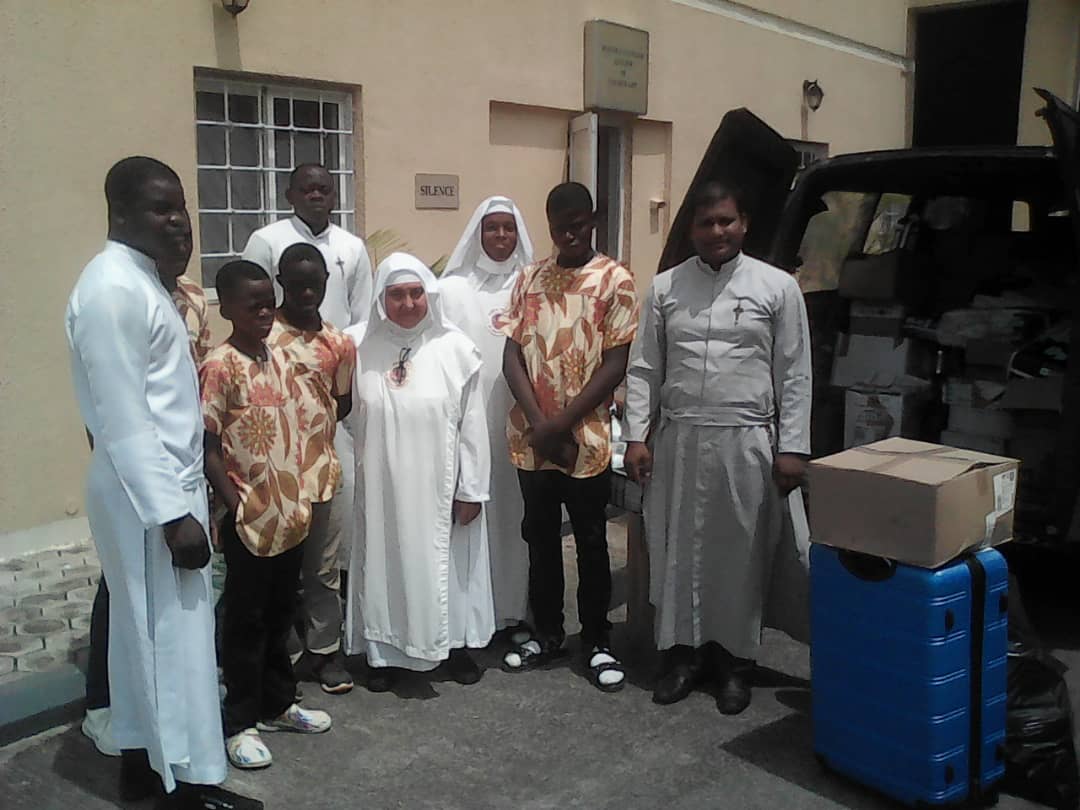 Il 16 giugno “i frutti della grande raccolta sono giunti a Lagos, presso il Monastero Mater Ecclesiae. Grazie all’impegno di volontari, di sorelle, Suor Benedetta ha avviato la distribuzione. I primissimi a ricevere i doni italiani sono stati i bambini dell’orfanotrofio ‘Amici di Gesù’”.