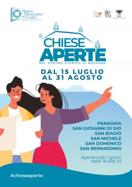 A partire da oggi 15 luglio e fino al 31 agosto le chiese del centro storico di Rossano, a Corigliano-Rossano, rimarranno aperte tutti i giorni dalle ore 16 alle ore 20, grazie alla presenza di volontari pronti ad accogliere i cittadini e i turisti che vorranno conoscere il valore storico di chiese generalmente chiuse al pubblico, perché non sedi parrocchiali.