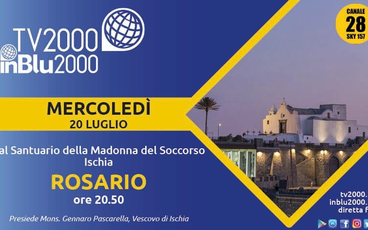 Torna l’appuntamento con “Prega con noi”. Tv2000 e InBlu2000 invitano i fedeli, le famiglie e le comunità religiose a ritrovarsi oggi, mercoledì 20 luglio alle 20.50, per recitare insieme il Rosario trasmesso su Tv2000 (canale 28 e 157 Sky), InBlu2000 e su Facebook. La preghiera sarà trasmessa dal santuario della Madonna del Soccorso a Ischia, con mons. Gennaro Pascarella, vescovo di Ischia.