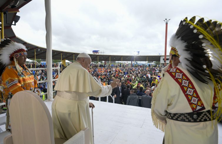 “Le mie parole pronunciate lungo questo cammino penitenziale sono rivolte a tutte le comunità e le persone native, che abbraccio di cuore”. Lo ha precisato il Papa, nel suo primo discorso in Canada, pronunciato a Maskwacis durante l’incontro con le popolazioni indigene First Nations, Métis e Inuit. “Sappiate che siete tutti nei miei pensieri e nella mia preghiera. Sappiate che conosco la sofferenza, i traumi e le sfide dei popoli indigeni in tutte le regioni di questo Paese”, ha detto il Papa rammaricandosi di non poter soddisfare tutti gli inviti a visitare gli altri territori dei nativi. “Oggi sono qui a ricordare il passato, a piangere con voi, a guardare in silenzio la terra, a pregare presso le tombe”, il riferimento alla sosta in preghiera nel cimitero che ha preceduto l’incontro odierno: “Lasciamo che il silenzio ci aiuti tutti a interiorizzare il dolore. Silenzio. E preghiera: di fronte al male preghiamo il Signore del bene; di fronte alla morte preghiamo il Dio della vita. Il Signore Gesù Cristo ha fatto di un sepolcro, capolinea della speranza di fronte al quale erano svaniti tutti i sogni ed erano rimasti solo pianto, dolore e rassegnazione, ne ha fatto il luogo della rinascita, della risurrezione, da cui è partita una storia di vita nuova e di riconciliazione universale. Non bastano i nostri sforzi per guarire e riconciliare, occorre la sua Grazia: occorre la sapienza mite e forte dello Spirito, la tenerezza del Consolatore. Sia Lui a colmare le attese dei cuori. Sia Lui a prenderci per mano. Sia Lui a farci camminare insieme”.