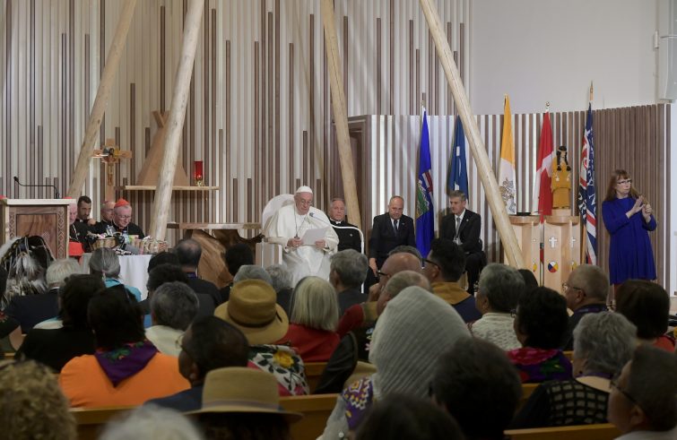 “La Chiesa, Corpo di Cristo, sia corpo vivente di riconciliazione”. È l’auspicio del Papa, espresso ieri incontrando le popolazioni indigene e i membri della comunità parrocchiale della Chiesa del Sacro Cuore ad Edmonton. “La stessa parola riconciliazione è praticamente sinonimo di Chiesa”, ha ricordato Francesco: “Il termine, infatti, significa ‘fare di nuovo un concilio’. La Chiesa è la casa dove conciliarsi nuovamente, dove riunirsi per ripartire e crescere insieme. È il luogo dove si smette di pensarsi come individui per riconoscersi fratelli guardandosi negli occhi, accogliendo le storie e la cultura dell’altro, lasciando che la mistica dell’insieme, tanto gradita allo Spirito Santo, favorisca la guarigione della memoria ferita”. “Questa è la via”, ha spiegato il Papa: “non decidere per gli altri, non incasellare tutti all’interno di schemi prestabiliti, ma mettersi davanti al Crocifisso e davanti al fratello per imparare a camminare insieme. Questa è la Chiesa e questo sia: il luogo dove la realtà è sempre superiore all’idea. Questa è la Chiesa e questo sia: non un insieme di idee e precetti da inculcare alla gente, ma una casa accogliente per tutti! Questo è la Chiesa e questo sia: un tempio con le porte sempre aperte dove tutti noi, templi vivi dello Spirito, ci incontriamo, ci serviamo e ci riconciliamo”.
