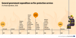 “Nel 2020 la spesa delle amministrazioni pubbliche nei 27 Stati membri dell’Ue per i ‘servizi antincendio’ è stata pari a 32,9 miliardi di euro, con un aumento del 6,4% rispetto al 2019, quando la spesa era di circa 30,9 miliardi di euro”. La quota della spesa pubblica per la protezione antincendio in rapporto alla spesa totale varia tra gli Stati membri. Nel 2020, la Danimarca ha registrato la quota più bassa della spesa per i servizi antincendio nella spesa totale con lo 0,1%, seguita dall’Islanda con lo 0,2% e da Belgio, Malta, Austria, Portogallo e Slovenia con lo 0,3% della spesa totale delle amministrazioni pubbliche. Al contrario, la Romania ha avuto la quota più alta di spesa per i servizi antincendio con lo 0,8%, seguita da Bulgaria, Cechia, Germania, Estonia, Grecia, Lituania e Lussemburgo con lo 0,6%.