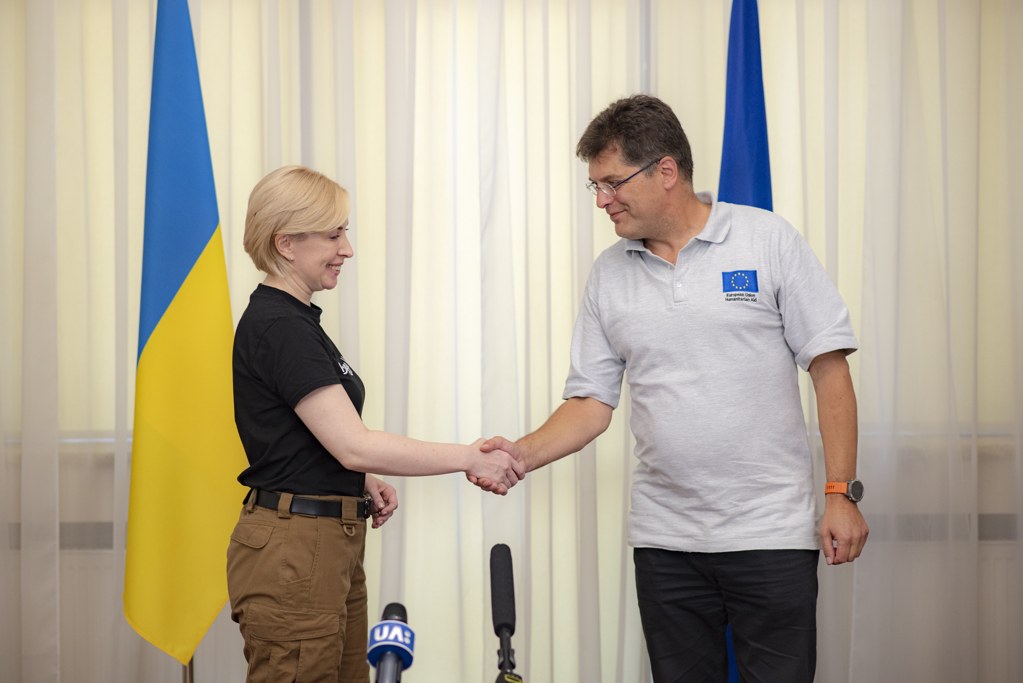 - Lenarcic con la vice premier ucraina Iryna Vereshchuk (Foto SIR/CE)