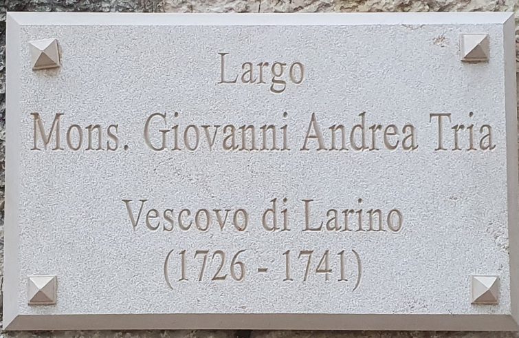 Nella serata di martedì 9 agosto lo spazio antistante la chiesa madre di Santa Maria Maggiore di Morrone del Sannio è stato intitolato al benemerito vescovo di Larino, mons. Giovanni Andrea Tria (1726-1741).