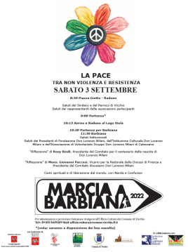 Inizia domani e proseguirà fino al 4 settembre a Barbiana-Vicchio, in provincia di Firenze, il “Laboratorio di Barbiana” con il quale Marcia PerugiAssisi vuole, assieme ad un gruppo di giovani tra i 22 e i 28 anni, in servizio civile, studenti universitari, amministratori locali, stagisti e lavoratori, confrontarsi nella città di don Milani “per cercare di capire cosa sta succedendo e cosa possono fare in prima persona per costruire un po’ di pace in tempo di guerra”. “Mentre la guerra sta travolgendo famiglie e imprese, torniamo a Barbiana per fare come don Milani: dare ascolto e spazio ai giovani, prenderli sul serio, investire sulle loro capacità, energie e intelligenze”. Sono queste le parole di Flavio Lotti, coordinatore della Marcia PerugiAssisi, che continua il suo cammino per la costruzione della cultura della pace all’insegna del motto di don Milani: “I Care!”, mi importa, mi sta a cuore, mi sento responsabile, voglio fare la mia parte. Il 3 settembre i giovani porteranno la grande bandiera della pace della PerugiAssisi alla Marcia di Barbiana, che si radunerà alle ore 8,30 in piazza Giotto e, dopo i saluti del sindaco, del parroco di Vicchio e dei rappresentanti delle associazioni partecipanti, partirà alle ore 9 per arrivare alle ore 10,15 al lago Viola, per poi proseguire verso Barbiana, dove alle ore 11,30 si svolgerà un momento con saluti, riflessioni e canti.