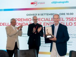 Anche quest’anno la Fondazione Ente dello Spettacolo (FEdS), ha proposto nel proprio spazio della Mostra internazionale d’arte cinematografica della Biennale di Venezia andato in scena dal 31 agosto al 10 settembre, una serie di appuntamenti come premiazioni, presentazioni di film, cortometraggi e libri, incontri con registi, autori e attori, dibattiti su tematiche sociali e di attualità alla presenza di personalità istituzionali, giornalisti. Momento principale, la cerimonia di consegna del Premio Robert Bresson al regista Hirokazu Kore’eda che, assieme agli altri 22 premiati nelle scorse edizioni, verrà raccontato nel volume che racconterà l’unico riconoscimento che la Chiesa cattolica conferisce ad un regista cinematografico. Quest’anno la FEdS ha consegnato un premio anche a Edgar Reitz, riconosciuto come esempio di un cinema volto a collocare al centro del discorso l’unicità dell’essere umano, ponendosi sempre come apertura verso l’altro e testimonianza di un percorso culturale complesso e stimolante. A Krzysztof Zanussi è andato invece il Premio di Famiglia Cristiana, che celebra quest’anno i suoi 90 anni. Nello Spazio FEdS sono stati realizzati oltre 60 eventi che hanno visto la presenza complessiva di circa 5mila partecipanti, ospitando esponenti dell’Industry, quando si è parlato di sviluppo dei territori attraverso l’audiovisivo, o di giovani per la presentazione del concorso di scrittura “Opera Prima”. Venezia è stata anche l’occasione per la realizzazione del podcast di Cinematografo, “A qualcuno piace radio”, ma anche per momenti di confronto sui temi dell’audiovisivo e sui discorsi mediali, iniziative per i giovani con Giffoni Innovation Hub, con il Premio Arca CinemaGiovani e la presentazione di Magic Dreams. Spazio anche alla valorizzazione del talento femminile con WiCA – Women in Cinema Award, Fondazione Veronesi e About Women, ma anche alle realtà editoriali, ad una rassegna di incontri aperti al pubblico, oltre che presentazione di opere audiovisive, libri ed altri progetti. La FEdS ha seguito i principali eventi della Mostra raccontando quotidianamente su Cinematografo.it tutte le ultime novità: circa 200 contenuti tra recensioni in anteprima, interviste, incontri, e photogallery.