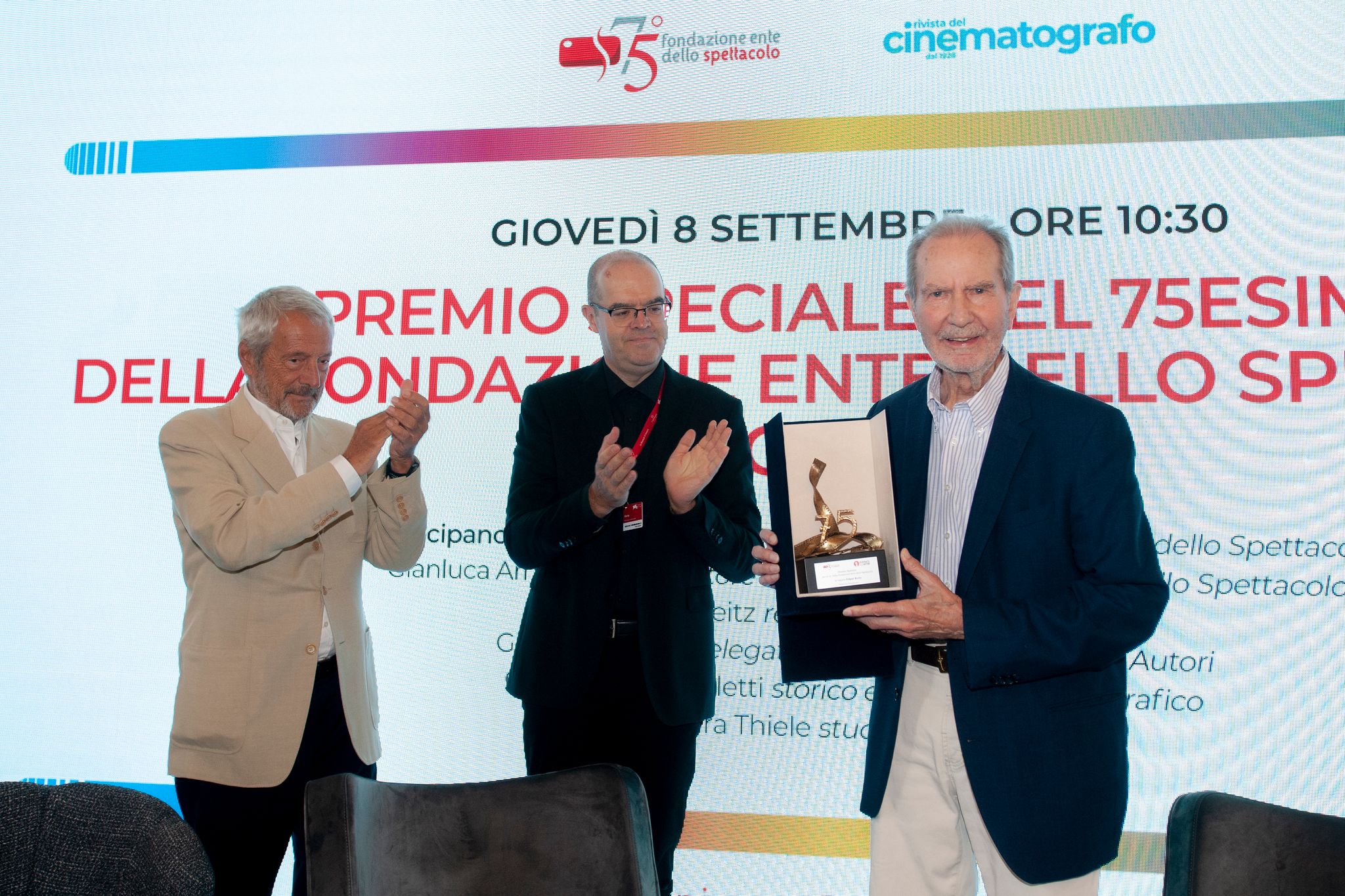 Anche quest’anno la Fondazione Ente dello Spettacolo (FEdS), ha proposto nel proprio spazio della Mostra internazionale d’arte cinematografica della Biennale di Venezia andato in scena dal 31 agosto al 10 settembre, una serie di appuntamenti come premiazioni, presentazioni di film, cortometraggi e libri, incontri con registi, autori e attori, dibattiti su tematiche sociali e di attualità alla presenza di personalità istituzionali, giornalisti. Momento principale, la cerimonia di consegna del Premio Robert Bresson al regista Hirokazu Kore’eda che, assieme agli altri 22 premiati nelle scorse edizioni, verrà raccontato nel volume che racconterà l’unico riconoscimento che la Chiesa cattolica conferisce ad un regista cinematografico. Quest’anno la FEdS ha consegnato un premio anche a Edgar Reitz, riconosciuto come esempio di un cinema volto a collocare al centro del discorso l’unicità dell’essere umano, ponendosi sempre come apertura verso l’altro e testimonianza di un percorso culturale complesso e stimolante. A Krzysztof Zanussi è andato invece il Premio di Famiglia Cristiana, che celebra quest’anno i suoi 90 anni. Nello Spazio FEdS sono stati realizzati oltre 60 eventi che hanno visto la presenza complessiva di circa 5mila partecipanti, ospitando esponenti dell’Industry, quando si è parlato di sviluppo dei territori attraverso l’audiovisivo, o di giovani per la presentazione del concorso di scrittura “Opera Prima”. Venezia è stata anche l’occasione per la realizzazione del podcast di Cinematografo, “A qualcuno piace radio”, ma anche per momenti di confronto sui temi dell’audiovisivo e sui discorsi mediali, iniziative per i giovani con Giffoni Innovation Hub, con il Premio Arca CinemaGiovani e la presentazione di Magic Dreams. Spazio anche alla valorizzazione del talento femminile con WiCA – Women in Cinema Award, Fondazione Veronesi e About Women, ma anche alle realtà editoriali, ad una rassegna di incontri aperti al pubblico, oltre che presentazione di opere audiovisive, libri ed altri progetti. La FEdS ha seguito i principali eventi della Mostra raccontando quotidianamente su Cinematografo.it tutte le ultime novità: circa 200 contenuti tra recensioni in anteprima, interviste, incontri, e photogallery.