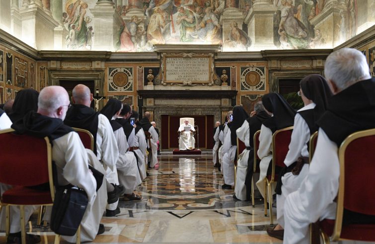 “Una comunità di vita consacrata può essere segno del Regno di Dio testimoniando uno stile di fraternità partecipativa tra persone reali, concrete, che, con i loro limiti, scelgono ogni giorno, confidando nella grazia di Cristo, di vivere insieme”. Lo ha detto il Papa ai partecipanti al Capitolo Generale dei Cistercensi della Stretta Osservanza (Trappisti), ricevuti oggi in udienza in occasione del loro Capitolo generale, che si tiene alla Porziuncola di Assisi. “Anche gli strumenti attuali di comunicazione possono e devono essere al servizio di una partecipazione reale – non solo virtuale – alla vita concreta della comunità”, il monito del Papa, che ha ricordato come il Vangelo “ci consegna il sogno di Gesù di una Chiesa tutta missionaria: questo mandato riguarda tutti, nella Chiesa. Non ci sono carismi che sono missionari e altri che non lo sono. Tutti i carismi, in quanto dati alla Chiesa, sono per l’evangelizzazione del popolo, cioè missionari; naturalmente in modi diversi, molto diversi, secondo la ‘fantasia’ di Dio”. “Un monaco che prega nel suo monastero fa la sua parte nel portare il Vangelo in quella terra, nell’insegnare alla gente che vive lì che abbiamo un Padre che ci ama e in questo mondo siamo in cammino verso il Cielo”, le parole indirizzata in modo particolare ai religiosi.