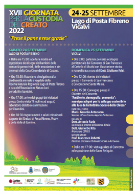 Il 24 e 25 settembre sono in programma nella diocesi di Sora-Cassino-Aquino-Pontecorvo, una serie di iniziative per celebrare la XVII Giornata della Custodia del creato dal titolo “Prese il pane e rese grazie”, organizzate dai diversi Uffici diocesani tra cui Caritas, Pastorale sociale e del lavoro e Progetto Policoro. Il calendario degli appuntamenti si aprirà sabato a Posta Fibreno, con una mostra di disegni dedicati ai temi delle giornate, realizzati dai bambini delle parrocchie e dei centri estivi, oltre che dai detenuti del carcere di Cassino. Nella stessa giornata si svolgerà un’escursione divulgativa sulla biodiversità animale e vegetale della Riserva naturale del lago di Posta Fibreno, a cura dell’associazione Natura Loci. Al termine della giornata è prevista la visita del vecchio mulino ad acqua ed un laboratorio didattico per i bambini in compagnia di giochi e animazioni. Domenica 25 settembre sarà possibile partecipare ad un cammino penitenziale che partirà dal convento di San Francesco a Vicalvi, dove saranno esposte per l’occasione le sacre reliquie, ed arriverà al Castello di Vicalvi, ex ospedale militare. Al rientro sarà celebrata la messa nel convento, mentre nel pomeriggio si svolgerà il convegno dal titolo “Ambiente, demografia, economia: nuovi paradigmi per lo sviluppo sostenibile alla luce della Dottrina Sociale della Chiesa”, introdotto da mons. Gerardo Antonazzo, con la partecipazione di Antonio Fazio e Giulio de Rita, moderati da Francesco Rabotti. Tutti gli eventi hanno l’obiettivo di sensibilizzare il territorio e le istituzioni laiche ed ecclesiali ai temi, dello sviluppo umano integrale per la cura sociale e pastorale del creato e della società. Questo è quanto si legge nel comunicato della diocesi che sottolinea come, in questo periodo particolare, si avvertisse l’esigenza di un’occasione di fraterna riflessione sui concetti di “Fraternità”, “Amicizia sociale” e “bene comune”, così come espressi da Papa Francesco nelle encicliche Fratelli tutti e Laudato si’. Un concetto da riportare poi nelle parrocchie ed in famiglia, vivendo in comunità il 23 ottobre prossimo, una giornata dedicata alla custodia del creato, in cui piantare le piante che saranno donate a termine delle manifestazioni del 24 e 25 settembre.