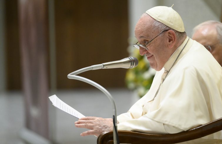 “La Comunità Shalom è nata quarant’anni fa durante una celebrazione eucaristica, al momento dell’offertorio. Questo è importante! Non è nata ‘a tavolino’, con un bel piano pensato da lui o da qualcun altro. È nata nella preghiera, nella liturgia”. È il saluto del Papa alla Comunità Shalom, incontrati oggi in occasione di un loro incontro. “È lo Spirito Santo che fa vivere la Chiesa, che la manda avanti”, ha ribadito Francesco: “E questo lo fa soprattutto nella preghiera, in modo speciale nella Liturgia. La liturgia non è una bella cerimonia, un rituale in cui ci sono al centro i nostri gesti o, peggio, le nostre vesti, no! La liturgia è azione di Dio con noi, e bisogna essere attenti a lui: a Lui che parla, a lui che agisce, a lui che chiama, a lui che invia… E questo non fuori dal tempo e dalla storia, no, dentro la realtà storica, dentro le situazioni. A noi spetta l’impegno di rimanere in lui, il resto lo fa lo Spirito Santo: lui è il protagonista, è lui. Sempre il protagonista della crescita della Chiesa è lo Spirito Santo, anche della crescita della mia anima”.