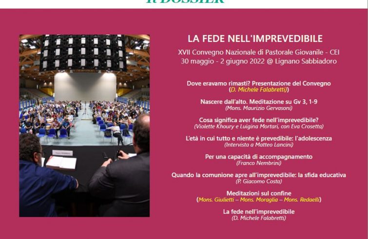 Sono stati pubblicati nel numero 6 (settembre/ottobre) di Note di Pastorale giovanile (Pg), gli atti del XVII Convegno nazionale di Pg che si è svolto a Lignano Sabbiadoro, dal 30 maggio al 2 giugno scorsi, sul tema “La fede nell’imprevedibile”. Gli atti riportano gli interventi dei relatori presenti a Lignano, tra i quali Violette Khoury e Luigina Mortari, Franco Nembrini e Matteo Lancini, padre Giacomo Costa, mons. Maurizio Gervasoni e don Michele Falabretti. Nel numero di Note di Pastorale giovanile è possibile trovare uno studio sul discernimento comunitario e le rubriche su giovani e vescovi, Intercultura e una fidanzata tra i Santi.