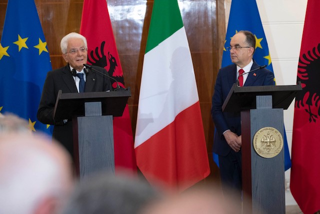 “È nostro obiettivo comune su questo versante – ha proseguito il Capo dello Stato – assicurare la connessione tra l’Ue e i Balcani occidentali. Per questo motivo riteniamo necessario e sosteniamo con molto vigore la partecipazione dei Paesi dei Balcani alla piattaforma Ue di acquisti collettivi di gas, gas liquefatto e idrogeno”. “Abbiamo di fronte a noi una quantità di sfide”, ha evidenziato Mattarella: “Questa della guerra nel pieno del continente europeo e della crisi del prezzo dell’energia è una di queste. Ve ne sono altre che questa sciagurata guerra sta rischiando di mettere in secondo piano: dalla lotta al cambiamento climatico ai problemi dei migranti e dell’economia mondiale sempre più integrata. Tutte queste cose richiedono un grande impegno collettivo”. Il presidente ha assicurato che per l’Italia l’Albania “è un partner di fondamentale importanza per affrontare questi problemi”. Anche per questo ha auspicato che procedano speditamente i negoziati di adesione dell’Albania all’Ue: “Sappiamo tutti bene – ha ammonito Mattarella – che il futuro dell’Albania è in Europa e che senza i Balcani occidentali la riunificazione del Continente sarebbe incompleta, non sarebbe realizzata davvero”.