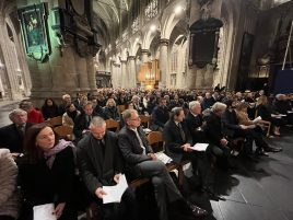 (Bruxelles) “Questa sera tante cose ci ricordano il nostro amato David Sassoli: le letture della messa, le preghiere, la musica. A queste abbiamo aggiunto due segni particolari che ci ha suggerito direttamente David Sassoli”. Lo ha affermato Lorenzo Mannelli, amico e già capo di Gabinetto dello scomparso presidente del Parlamento europeo, all’inizio della messa celebrata questa sera nella chiesa del Sablon di Bruxelles. “Sono lieto di condividere con voi il senso e il significato che David ha voluto attribuire a quei due oggetti ricordando le poche parole”, insieme ad alcuni suoi auspici per il suo funerale, “che sono stati inaspettatamente (e tardivamente) trovati dalla sua famiglia, sul suo iPad”. La prima è stata la presenza sull’altare del libro delle Confessioni di sant’Agostino che il padre di Sassoli aveva “riportato dalla guerra: una scelta molto significativa e sentita per Davide”.