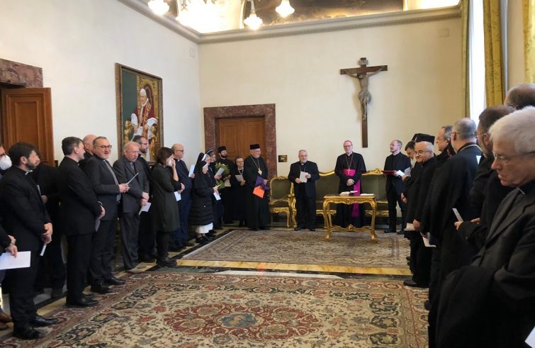 Questa mattina, lunedì 16 gennaio, mons. Claudio Gugerotti, arcivescovo titolare di Ravello, ha iniziato il suo servizio di prefetto del Dicastero per le Chiese orientali. Al suo arrivo negli Uffici è stato accolto dall’arcivescovo segretario Giorgio Demetrio Gallaro e dal sotto-segretario, con i quali si è intrattenuto brevemente prima di recarsi nella Sala riunioni ove ha incontrato il personale, rivolgendo alcune parole di saluto e di introduzione al lavoro che il Dicastero offre al Santo Padre per la vita delle Chiese orientali cattoliche.