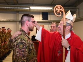 “Voi che rappresentate l’Italia e l’Esercito Italiano, svolgete un servizio di fondamentale importanza per il raggiungimento di scenari di pace, dove la custodia della persona viene posta al centro di ogni obiettivo”. Sono queste le parole che l’arcivescovo ordinario militare per l’Italia (Omi), mons. Santo Marcianò, ha detto facendo visita nella Novo Selo Training Area ai militari italiani impegnati nella missione Enhanced Vigilance Activity in Bulgaria, accolto dal colonnello Francesco Alaimo, Comandante del Multinational Battle Group Bulgaria. “Considero un onore poter incontrare gli uomini e le donne di questo contingente”, ha aggiunto il presule secondo quanto riportato sul sito del ministero della Difesa, rivolgendosi a donne e uomini che da agosto compongono il primo Multinational Battle Group della Nato a guida italiana, con parole di ammirazione e gratitudine per il lavoro svolto. Momento centrale della visita è stata la messa durante la quale, alla presenza anche di componenti straniere del Battle Group composto da Bulgaria, Stati Uniti d’America, Grecia, Albania, Montenegro e Macedonia del Nord, mons. Marcianò ha impartito il sacramento della cresima a 15 militari italiani.