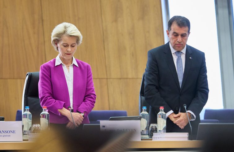 “All’alba dello Shabbat, sabato scorso, il mondo intero si è svegliato inorridito. Centinaia di persone innocenti furono uccise a sangue freddo. I terroristi di Hamas hanno ucciso donne e bambini nelle loro case. Hanno dato la caccia a centinaia di giovani uomini e donne che celebravano la vita e la musica. Hanno preso in ostaggio centinaia di innocenti, il cui destino è ancora sconosciuto”. Lo ha affermato la presidente della Commissione Ursula von der Leyen in occasione del minuto di silenzio celebrato dal Collegio in onore delle vittime degli attentati terroristici in Israele, alla presenza dell’ambasciatore di Israele presso l’Ue, Haim Regev. “Questi innocenti sono stati uccisi per una sola ragione. Per essere ebrei e vivere nello Stato di Israele. È un male antico, che ci ricorda il passato più oscuro e sconvolge tutti noi nel profondo. Dobbiamo essere chiari nel definire questo tipo di orrore. È terrorismo. Ed è un atto di guerra”.