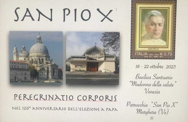 Nel 120esimo anniversario della sua elezione papale le diocesi di Treviso, Padova e Venezia accolgono in questi giorni le spoglie di san Pio X. Per Treviso, Riese e Padova l’arrivo delle reliquie di Pio X rappresenta una storica “prima volta”, mentre per il Patriarcato di Venezia si tratta di un ritorno dopo il passaggio vissuto già nel 1959 e che, di fatto, confermò la promessa fatta dall’allora patriarca Sarto alla sua partenza dalla città lagunare per raggiungere il conclave: “O vivo o morto tornerò a Venezia”.