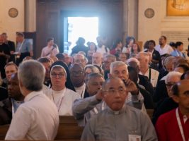 “È davvero un momento bello, presentare a voi all’interno del cammino sinodale, questi luoghi altamente emblematici e significativi di un’immagine, di un’idea di Chiesa”, le parole di mons. Iacobone che ha guidato i pellegrini nella visita, spiegando come il termine “catacombe” sia nato proprio in quel luogo, per indicare prima i mausolei pagani e la necropoli cristiana insediatasi lungo l’Appia antica, e poi termine per designare tutti i cimiteri sotterranei cristiani. “Significa andare davvero alle radici della nostra storia, della nostra identità, della comunità cristiana di Roma”, ha proseguito il presidente della Pontificia Commissione di Archeologia Sacra, aggiungendo come quel luogo prima di prendere il nome del martire San Sebastiano, fosse indicato come “memoria apostolorum”, cioè memoria degli apostoli, proprio perché i graffiti in quel luogo testimoniano come dal 258, pellegrini cristiani arrivavano dall’Italia ma anche dall’Africa per chiedere l’intercessione di Pietro e Paolo insieme. “Per voi padri sinodali, è bello pensare Pietro e Paolo che camminano insieme”, ha proseguito mons. Iacobone richiamando l’attenzione alla “concordia apostolorum”, cioè l’immagine di Pietro e Paolo abbracciati, che si trova all’interno delle catacombe sotto via Ostiense, “un’immagine che diventa emblematica di due Chiese, di due tradizioni, di due realtà abbastanza diverse che invece si riconciliano, si ritrovano”.