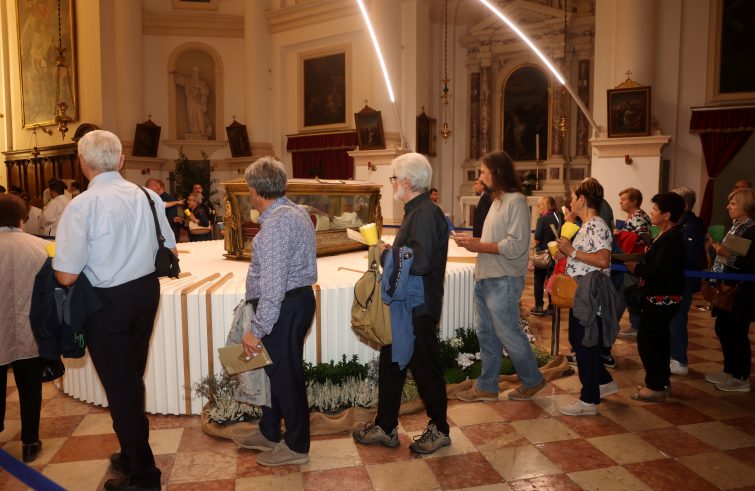 La diocesi di Treviso, in questo particolare tempo di grazia della “Peregrinatio corporis” di san Pio X, sta pregando in modo speciale per la pace. Anche venerdì sera, 13 ottobre, durante il terzo dei pellegrinaggi dai vicariati, al santuario delle Cendrole – che custodisce fino a domenica 15 le spoglie di san Pio X – il vescovo Tomasi e gli oltre quattromila fedeli presenti hanno pregato per la pace in Terra santa, in Ucraina e negli altri Paesi del mondo dove i popoli soffrono a causa della guerra. Sono state lette anche le parole di papa Pio X all’inizio della Prima guerra mondiale. “Ai nostri giorni – ha detto Tomasi -, risuonano in modo sempre più drammatico le parole di papa Francesco che dice che stiamo vivendo la terza guerra mondiale a pezzi. Ci sentiamo chiamati a pregare insistentemente per la pace, e interpellati a una responsabilità creativa e forte per questo bene. Affidiamo all’intercessione di san Pio X ogni impegno per la pace”.