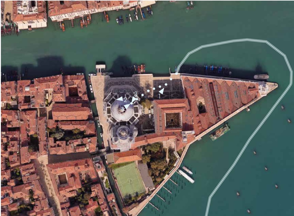 “Per accedervi, è stata anticipata la realizzazione della rampa usata per la Festa della Salute”, spiega Michele Sbrissa, coordinatore del progetto per 593 Studio. “Negli spostamenti è stata posta enorme attenzione alle rampe di sbarco – prosegue -, tarate per il transito di veicoli articolati di diverse tonnellate e rivestite con pannelli lignei e materassini in neoprene. Non solo. Si è previsto l’uso di pannellature Osb e materassino in neoprene dove era presente pavimentazione in selciato e anche all’interno della basilica per ammortizzare le imperfezioni dei pavimenti in marmo esterni ed interni e per preservare l’integrità degli stessi”.