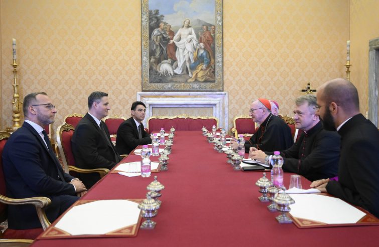 È durato circa 25 minuti il colloquio privato tra il Papa e, Denis Bećirović, membro della Presidenza collegiale della Bosnia ed Erzegovina, il quale successivamente si è incontrato con il cardinale segretario di Stato, Pietro Parolin, accompagnato da mons. Paul R. Gallagher, segretario per i Rapporti con gli Stati e le Organizzazioni Internazionali. “Durante i cordiali colloqui in Segreteria di Stato – informa la Sala Stampa della Santa Sede – è stato espresso apprezzamento per le positive relazioni bilaterali, accennando anche ad alcune questioni aperte nei rapporti Chiesa-Stato. Ci si è soffermati poi sulla realtà interna del Paese ed è stato ribadito che la base della pace e della stabilità è l’uguaglianza giuridico-sociale di tutti i popoli costitutivi ed il dialogo di tutti gli attori politici”. Nel prosieguo della conversazione, si legge ancora nel comunicato, “c’è stato uno scambio di vedute sulla situazione internazionale, con particolare attenzione alle conseguenze della guerra in Ucraina e del conflitto in Terra Santa, all’allargamento dell’Unione europea ai Paesi dei Balcani occidentali, nonché ai progressi nel cammino europeo della Bosnia ed Erzegovina”. Il Papa ha regalato a Bećirović la fusione in bronzo “La pace è un fiore fragile”, oltre ad una copia dell’esortazione apostolica “C’est la confiance”, al Messaggio per la pace 2023, al Documento sulla Fratellanza umana e al libro sulla Statio Orbis del 27 marzo 2020, a cura della Lev. Bećirović ha regalato al Papa il Codex diplomaticus Regni Bosnae, tratto dal volume finale della trilogia sul medioevo bosniaco e il Documento solenne del ReTvrtko I Kotromanić, Žrnovnice, scritto sulla corte a Trstivnica il 17 Giugno 1378, uno dei più importanti documenti del corpo diplomatico della Bosnia medievale.