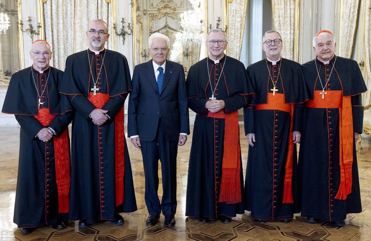 Il presidente della Repubblica, Sergio Mattarella, ha offerto oggi, al Palazzo del Quirinale, la tradizionale colazione in onore dei nuovi cardinali italiani nominati nel Concistoro del 30 settembre 2023: il card. Claudio Gugerotti, prefetto del Dicastero per le Chiese orientali, il card. Pierbattista Pizzaballa, Patriarca Latino di Gerusalemme, il card. Agostino Marchetto, nunzio apostolico. Ne dà notizia il Quirinale spiegando che erano presenti anche il card. Pietro Parolin, segretario di Stato di Sua Santità, il card. Emil Paul Tscherrig, nunzio apostolico in Italia, e Francesco Di Nitto, ambasciatore d’Italia presso la Santa Sede.