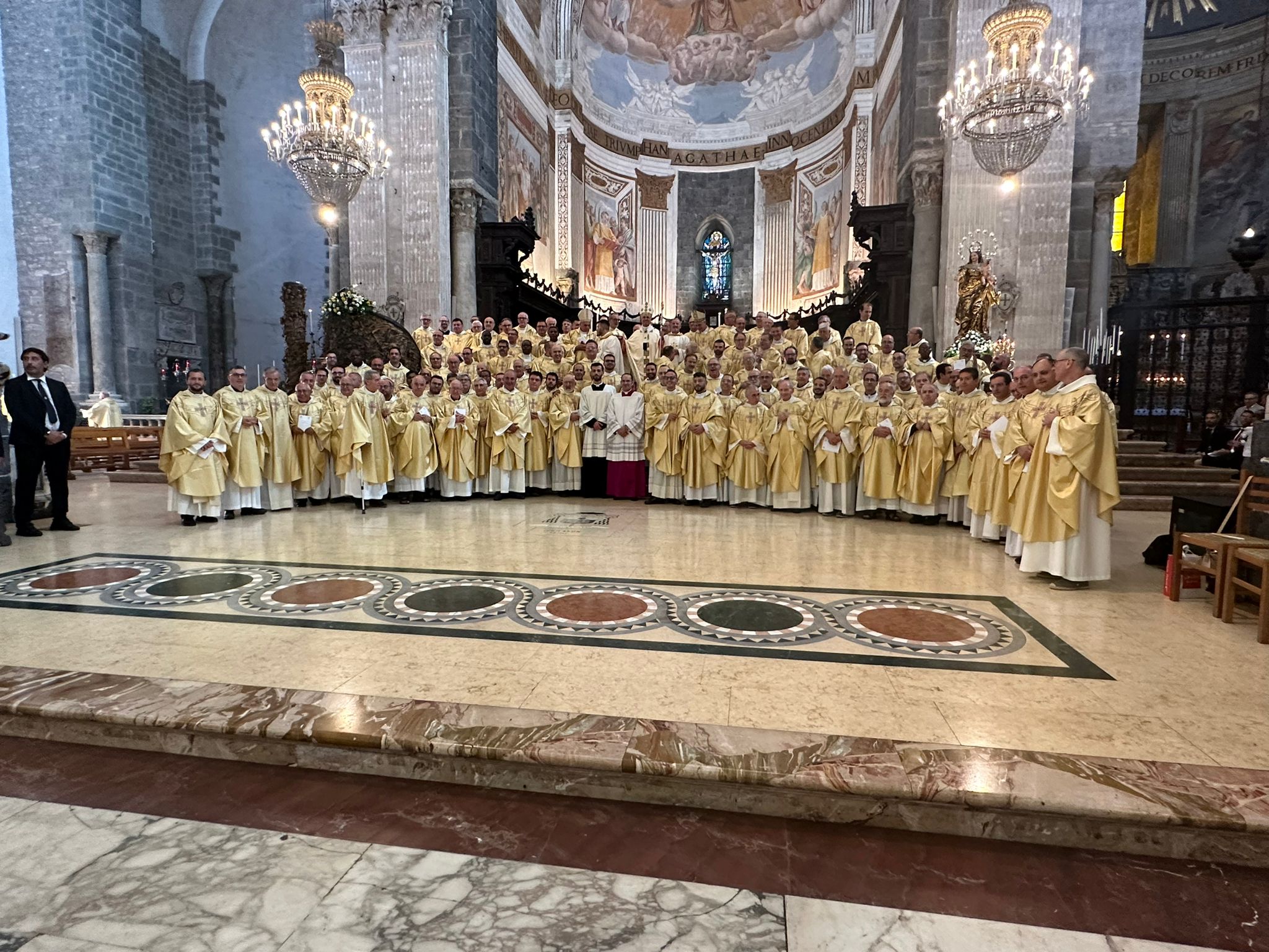 Oggi nella cattedrale di Catania, l’arcivescovo Luigi Renna ha ordinato sacerdoti don Alfio Caruso, della comunità Maria SS. Assunta di Adrano, e don Sebastiano Scamporino, della comunità parrocchiale S. Agata al Borgo di Catania. Don Sebastiano Scamporino, giovane seminarista di 28 anni, originario della diocesi di Comiso, ha scelto di completare il suo percorso formativo a Catania e di essere incardinato nella diocesi etnea. Don Alfio Caruso ha deciso di continuare a servire la Chiesa come presbitero, dopo aver operato al suo interno per 23 anni come diacono permanente. Padre di quattro figli, don Alfio ha maturato tale scelta dopo la prematura scomparsa della moglie, Rita Monachino, nel 2019. Uno dei suoi figli, Daniele, ha deciso peraltro di intraprendere il proprio percorso vocazionale nel Seminario “Redemptoris Mater” a Roma, per diventare sacerdote nel contesto del cammino neocatecumenale. “Siete arrivati a quest’oggi attraverso strade diverse, e sotto certi aspetti imprevedibili”, ha dichiarato l’arcivescovo di Catania nell’omelia, aggiungendo: “Quando si ha a cuore una comunione sostanziale, scevra da apparenze ed ipocrisia; quando si vive il servizio al popolo di Dio lasciandoci guidare dall’obbedienza; quando quel ‘per tutta la vita’ non ci fa guardare l’orologio, ma ci fa spendere in ogni giorno, come umili servi, allora i frutti del Regno di Dio verranno, anche se ci sembrerà di lavorare invano”.
