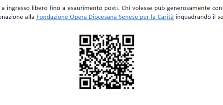 Chi vuole potrà, dunque, generosamente contribuire con una donazione alla Fondazione Opera diocesana senese per la carità inquadrando il Qr code in fotografia.