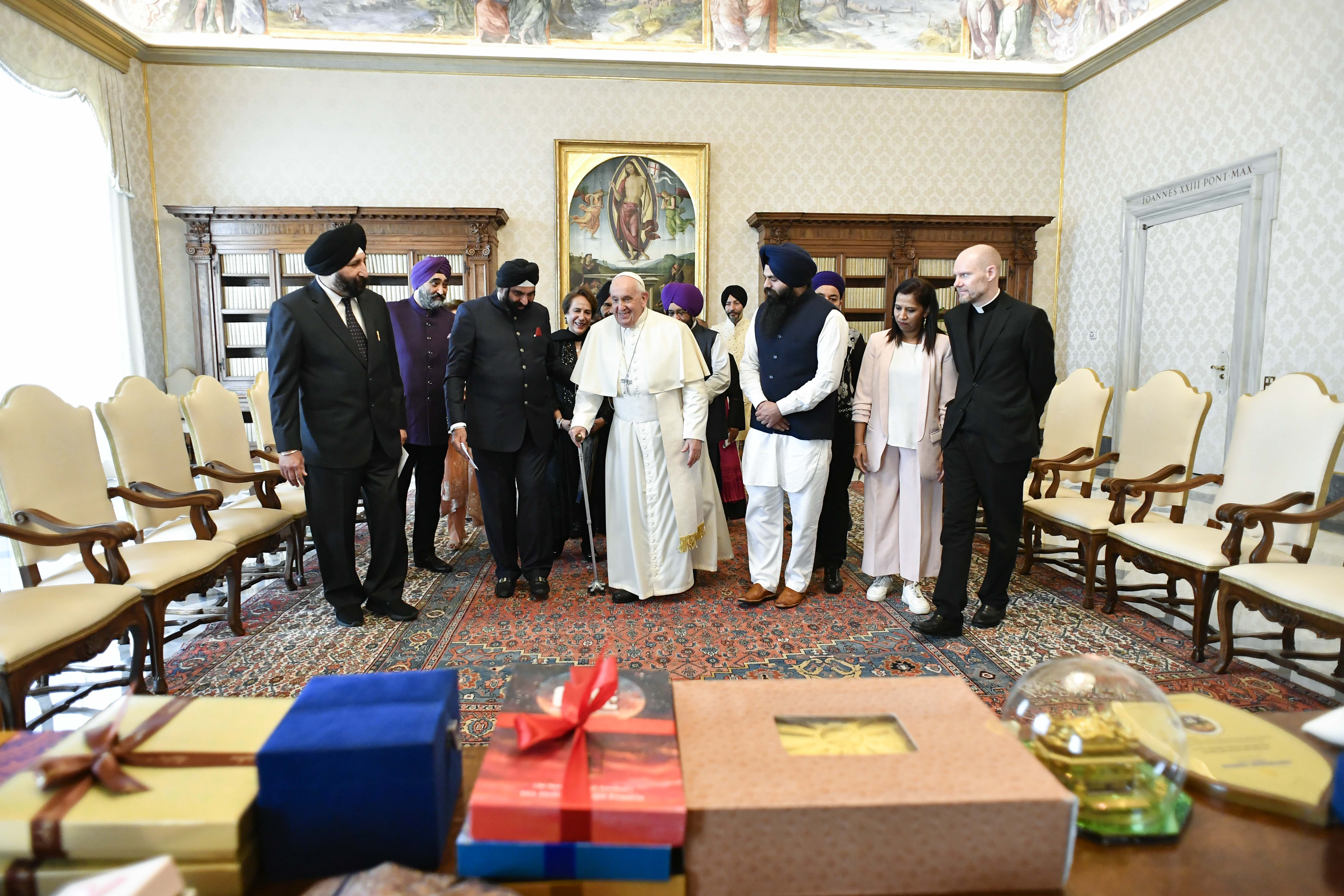 “Costruendo ponti tra le persone, e specialmente servendo i poveri, i bisognosi e i sofferenti, voi riconoscete i vari modi in cui le vostre stesse vite sono state benedette ed arricchite. “Lo ha detto Papa Francesco ricevendo in udienza la delegazione della Comunità Sikh degli Emirati Arabi Uniti. Il Pontefice ha sottolineato “il vostro impegno a vivere nella fede e a contribuire al bene della società, cercando di integrarvi e al tempo stesso di rimanere fedeli alla vostra specifica identità”. “Fede e servizio, come sapete, sono intimamente uniti – ha aggiunto -. Infatti la via autentica per arrivare a Dio, come dice la vostra Sacra Scrittura Guru Granth Sahib, è nel servizio agli uomini nostri fratelli”. Poi, ha richiamato le beatitudini. E ha affermato che “il servizio disinteressato, reso particolarmente a chi tra noi è più piccolo e si trova alle periferie della società, oltre a renderci consapevoli della nostra piccolezza e insufficienza, ci avvicina a Dio”. “Possa dunque esso restare sempre il vostro stile di vita, e possiate voi essere una benedizione per tutti quelli che servite – ha auspicato -, promuovendo uno spirito di fraternità e di uguaglianza, di giustizia e di pace”.