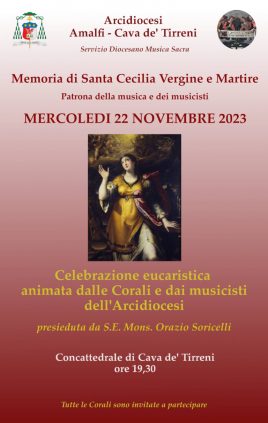 Oggi, mercoledì 22 novembre, in occasione della festa di Santa Cecilia, l’arcivescovo di Amaldi-Cava de’ Tirreni, mons. Soricelli, incontrerà tutte le corali diocesane nel corso di una celebrazione che si terrà nella concattedrale di Cava de’ Tirreni, alle 19,30.