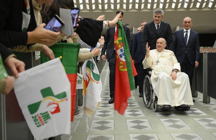 “Non posso parlare molto”. Lo ha detto il Papa, durante l’udienza concessa in Aula Paolo VI ai membri del Comitato e della Fondazione Giornata mondiale della gioventù Lisbona 2023, in cui ha pronunciato alcune parole a braccio e ha poi lasciato ad un suo collaboratore la lettura del testo scritto per l’occasione . E proprio ricordando la Gmg di Lisbona, Francesco l’ha definita “un momento di evangelizzazione forte e di allegria” e ha detto: “Mi ricordo anche i pasteis, sono molto buoni!”.