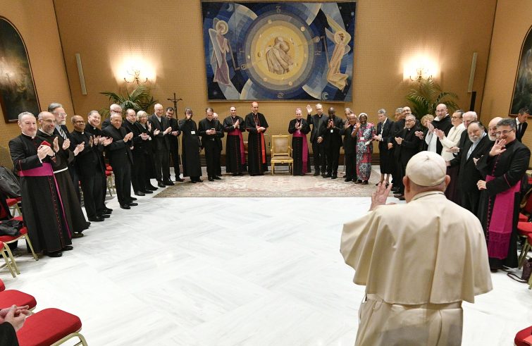 “Scusatemi, ho parlato troppo e mi ha fatto male, ma adesso seduti come siamo, possiamo pregare un Padre Nostro insieme, ognuno nella propria lingua e poi darò la benedizione”. Sono le parole a braccio con cui il Papa si è congedato dai membri della Commissione teologica internazionale, ricevuti oggi in udienza. “Grazie di questa visita”, ha proseguito Francesco: “E grazie per il vostro lavoro. C’è un bel discorso qui con cose teologiche, ma per come sto io, meglio non leggerlo. Ve lo consegno”. “La teologia, la riflessione teologica, è molto importante”, l’esordio del discorso pronunciato a braccio: “Ma c’è qualcosa che non piace a me di voi, scusatemi la sincerità. Una, due, tre, quattro donne: poverette! Sono sole! Ah, scusami, cinque. Su questo dobbiamo andare avanti! La donna ha una capacità di riflessione teologica diversa da quella che abbiamo noi uomini. Sarà perché io ho studiato tanto la teologia di una donna”. “Mi ha aiutato una tedesca brava, Hanna-Barbara Gerl, su Guardini”, ha rivelato il Papa: “Lei aveva studiato quella storia e la teologia di quella donna non è tanto profonda, ma è bella, è creativa. E adesso, nella prossima riunione dei nove Cardinali, avremo una riflessione sulla dimensione femminile della Chiesa”. “La Chiesa è donna”, ha ripetuto Francesco: “E se noi non sappiamo capire cos’è una donna, cos’è la teologia di una donna, mai capiremo cos’è la Chiesa”. “Uno dei grandi peccati che abbiamo avuto è maschilizzare la Chiesa”, la denuncia del Papa: “E questo non si risolve per la via ministeriale, questa è un’altra cosa. Si risolve per la via mistica, per la via reale. A me ha dato tanta luce il pensiero balthasariano: principio petrino e principio mariano. Si può discutere questo, ma i due principi ci sono. È più importante il mariano che il petrino, perché c’è la Chiesa sposa, la Chiesa donna, senza maschilizzarsi. E voi vi domanderete: dove porta questo discorso? Non soltanto per dirvi che abbiate più donne qui dentro – questo è uno –, ma per aiutare a riflettere. La Chiesa donna, la Chiesa sposa. E questo è un compito che vi chiedo, per favore. Smaschilizzare la Chiesa. E grazie per quello che fate”.