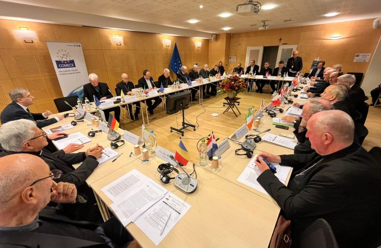 (da Bruxelles) “C’è un problema di sicurezza che periodicamente si ripropone nei nostri Paesi, con inquietanti episodi di terrorismo; ma c’è anche un problema di adeguata informazione e di tendenze ideologiche e pregiudizi che non preoccupano meno, considerati i rigurgiti di antisemitismo che si ripresentano specialmente in queste circostanze, oltre che la polarizzazione verso l’una o l’altra causa che le manifestazioni di piazza denunciano, perdendo di vista la complessità delle situazioni e la considerazione della sofferenza di tutti quelli che la patiscono e non solo di una parte di essi”. Sono queste le preoccupazioni che alla luce dei diversi scenari di conflitto, dall’Ucraina alla Terra Santa, stanno a cuore ai vescovi delegati delle Conferenze episcopali dell’Unione Europee e ad elencarle è stato mons. Mariano Crociata, presidente della Comece, aprendo questo pomeriggio a Bruxelles l’assemblea di autunno dei vescovi Ue. “Sono trascorsi poco meno di due anni dall’avvio dell’aggressione russa contro l’Ucraina che ha scatenato una guerra di cui non si riescono a intravedere prospettive di sorta”, ha detto Crociata. “Ad essa lo scorso 7 ottobre si è aggiunto l’attacco terroristico di Hamas contro Israele, a cui è seguito un conflitto che proprio in questi giorni sembra conoscere una escalation inarrestabile”. A Bruxelles i vescovi avranno modo di dialogare con l’arcivescovo maggiore Schevchuk, capo della Chiesa greco-cattolica ucraina, e di ascoltare la testimonianza del patriarca Pizzaballa. “Sarà l’occasione per dire la nostra piena solidarietà alla sofferenza dei loro fedeli, ma anche per ribadire il nostro rifiuto del terrorismo come metodo di lotta politica, la nostra condanna nei confronti di ogni forma di trasgressione del diritto internazionale e del rispetto dei confini e della dignità e intangibilità di ogni nazione, soprattutto la nostra pena per tutte le vittime della violenza, particolarmente i civili, i bambini, le donne, gli anziani, per lo sconvolgimento della vita di tante famiglie, per le sofferenze immani di feriti e di sfollati. Per quanto è in nostro potere, ci impegniamo a sostenere la causa della giustizia e dei diritti di singoli e di comunità locali e nazionali”. “Anche per questo – ha proseguito il presidente della Comece – non possiamo rimanere insensibili di fronte al significato e agli effetti delle posizioni che l’Ue assume sui conflitti, insieme a tante altre situazioni che si dispiegano sotto i nostri occhi. Facciamo nostre le parole di Papa Francesco a Lisbona, lo scorso 2 agosto, quando a proposito di essa ha detto: ‘Di Europa, di vera Europa, il mondo ha bisogno: ha bisogno del suo ruolo di pontiere e di paciere nella sua parte orientale, nel Mediterraneo, in Africa e in Medio Oriente’”.