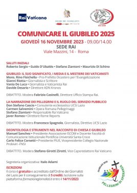 Si svolgerà giovedì 16 novembre, dalle 9 alle 14, nella sede Rai di viale Mazzini 14 a Roma, il corso gratuito di formazione “Comunicare il Giubileo 2025”, promosso da Rai Vaticano, Odg e Ucsi Lazio. Il seminario prende spunto dal fatto che l’Anno giubilare ha sempre rappresentato nella storia un evento di grande rilevanza spirituale, ecclesiale e sociale. Da quando Bonifacio VIII, nel 1300, istituì il primo Anno Santo – con ricorrenza secolare, divenuta poi, sul modello biblico, cinquantennale e quindi fissata ogni venticinque anni –, l’evento è stato un momento di passaggio importante non solo dal punto di vista religioso ma anche civile. Storicamente incentrato sulla città di Roma, milioni di fedeli, spesso al termine di un lungo pellegrinaggio, hanno attraversato nei secoli la Porta Santa e venerato le reliquie degli Apostoli Pietro e Paolo custodite nelle basiliche romane.