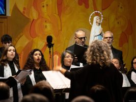 Solo posti in piedi e svariati minuti di applausi finali al primo concerto di Natale del coro di San Paolo della Croce, a Corviale. Sotto il palazzo lungo un chilometro, lo spirito del Natale ha soffiato forte e fatto sentire la sua presenza tra le persone che hanno riempito la chiesa. Erano molti i cellulari accesi per riprendere brani del concerto e tanti gli occhi lucidi che hanno fatto fatica a trattenere le emozioni, lasciando il più delle volte libero sfogo a qualche lacrima. Da Maria a Maria: il concerto è stato aperto con “Madre fiducia nostra” e chiuso con “Salve dolce Vergine”, come atto di protezione e affidamento per un progetto che sembrava quasi impossibile e il ringraziamento per la sua realizzazione finale. Un lavoro lungo che ha visto prove settimanali e studio individuale, ma anche condivisione e divertimento, insomma tanta fatica ma all’interno di una vera e propria famiglia nella quale si cresce insieme.