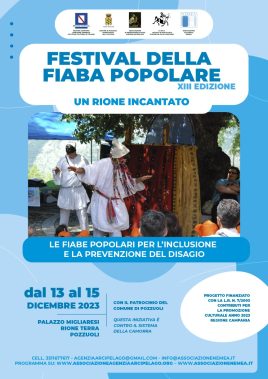 Giunto alla XIII edizione, il “Festival della fiaba popolare” è organizzato dall’Associazione Agenzia Arcipelago Aps, insieme alle Associazioni Ipers Aps e Nemea Aps, con il patrocinio del Comune di Pozzuoli – Assessorato alla Cultura, in rete con diverse organizzazioni culturali del Terzo settore, tra le quali le Associazioni Lux in Fabula, Museo Minimo, Indilia, Spazio Smile, Scuola elementare del Teatro.