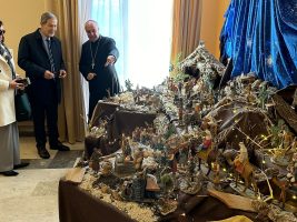 “Non è un momento formale, ma il riconoscimento di una stima reciproca e di una collaborazione che ci deve animare nel servizio verso la gente, in un territorio ricco di risorse ma con molte criticità”: sono state le parole di mons. Luigi Renna, arcivescovo di Catania, intervenuto questa mattina nel Palazzo arcivescovile assieme a don Alfio Carbonaro, direttore dell’Ufficio di pastorale sociale e del lavoro, ed al vicario generale mons. Salvatore Genchi, al tradizionale scambio di auguri natalizi con gli amministratori comunali e i rappresentanti istituzionali catanesi. Tra i presenti, il ministro della Protezione civile e delle politiche del mare, Nello Musumeci, i deputati nazionali Giuseppe Castiglione e Anthony Barbagallo, l’assessore regionale Andrea Messina, il presidente del Consiglio comunale di Catania, Sebastiano Anastasi, i sindaci Pino Firarello di Bronte, Nino Naso di Paternò, Massimiliano Giammusso di Gravina di Catania, Antonino Bellia di San Giovanni La Punta e Alfio Cristaldo di Pedara. “Non poche preoccupazioni del vostro operare per il bene comune vengono assorbite dall’impegno per il superamento della povertà, per lo sviluppo, sapendo che non possiamo essere sereni se le nostre città rimangono divise in due: da una parte il benessere e dall’altra la precarietà”, ha aggiunto l’arcivescovo nel suo discorso in cui ha fatto riferimento al racconto della Natività secondo il Vangelo di Luca, sottolineando come la nascita di Cristo in una situazione di umiltà e precarietà trasmetta un importante messaggio. Affrontate anche tematiche legate all’operato dei politici per il bene comune, come il superamento della povertà, lo sviluppo sociale, l’ambiente e la lotta al cambiamento climatico, con l’incoraggiamento gli amministratori nel loro impegno, riconoscendo che il loro ruolo è insostituibile nell’arte della politica che mira a creare istituzioni più giuste, ordini più solidali e strutture più equilibrate. “Coraggio! Ogni vostro progetto, che accrescerà il bene comune assicurerà sviluppo e riscatto sociale alle famiglie più povere, tutelerà la salute del pianeta perché sia la casa accogliente per le future generazioni, sarà benedetto da Dio e apprezzato dagli uomini e dalle donne di buona volontà”, ha aggiunto mons. Renna concludendo: “Buon Natale e che il 2024 sia un Anno di pace!”.