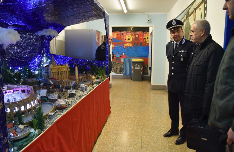 All’ingresso del carcere, il vescovo ha ammirato il grande presepe realizzato da un detenuto di alta sicurezza 3, in collaborazione con altri detenuti dello stesso circuito. Il presepe è ambientato nella Roma antica, rappresentata dal Colosseo, e nella Roma cristiana rappresentata dalla basilica di San Pietro, con la natività sospesa su una nuvola che domina dall’alto il paesaggio sottostante. Un presepe interamente artigianale, frutto di un lavoro iniziato da mesi, con i vari pezzi realizzati all’interno delle camere detentive.
