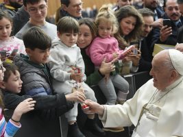 “Oggi viviamo in un tempo che a volte appare ossessionato dall’apparire, tutti cercano di mettere in vetrina sé stessi, specialmente attraverso i cosiddetti social”. Lo ha detto il Papa, incontrando in Aula Paolo VI i dipendenti della Santa Sede e del Governatorato dello Stato della Città del Vaticano, con i rispettivi familiari, per gli auguri di Natale. “C’è il tempo del trucco, tutti si truccano, non solo la faccia, ma si truccano l’anima”, ha aggiunto a braccio. “È un po’ come volere dei preziosi bicchieri di cristallo senza preoccuparsi che il vino sia buono”, l’esempio scelto da Francesco: “Il vino buono lo si beve in un vaso comune. Ma in famiglia le apparenze e le maschere non contano, o comunque durano poco; ciò che conta è che non venga a mancare il vino buono dell’amore, della tenerezza e della comprensione reciproca. E questo è lo stile di Dio: vicinanza, compassione, tenerezza. E l’amore – lo sappiamo bene – non fa rumore. Lo viviamo nel nascondimento e nella piccolezza dei gesti quotidiani, nelle attenzioni che sappiamo scambiarci. Questo vi auguro: di essere attenti, nelle vostre case e nelle vostre famiglie, alle piccole cose di ogni giorno, ai piccoli gesti di gratitudine, alla premura del prendersi cura”. “Il vostro lavoro qui in Vaticano si svolge per lo più nel nascondimento quotidiano, spesso portando avanti cose che possono sembrare insignificanti e che, invece, contribuiscono a offrire un servizio alla Chiesa e alla società”, la fotografia scattata dal Papa: “Vi ringrazio per questo, e vi auguro che possiate continuare il vostro lavoro con spirito di gratitudine, con serenità e con umiltà, e dando proprio lì, nelle relazioni con i vostri colleghi e colleghe, testimonianza cristiana. Anche qui, anzi, prima di tutto qui, ce n’è bisogno, non è vero?”. “Guardate il nascondimento e la piccolezza di Gesù nella grotta”, l’invito di Francesco: “guardate la semplicità del presepe che avete fatto a casa; e state certi che il bene, anche quando è nascosto e invisibile, cresce senza fare rumore, si moltiplica in modo inaspettato e diffonde il profumo della gioia. Questo stile – il nascondimento e la piccolezza – vorrei augurarlo anche alle vostre famiglie e ai vostri ragazzi”.
