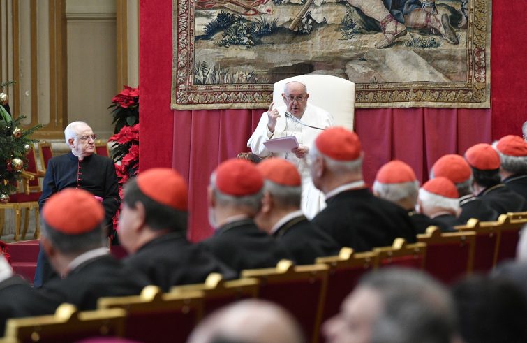 “Ascoltare ‘in ginocchio’ è il modo migliore per ascoltare davvero, perché significa che non stiamo davanti all’altro nella posizione di chi pensa di sapere già tutto, di chi ha già interpretato le cose prima ancora di ascoltare, di chi guarda dall’alto in basso ma, al contrario, ci si apre al mistero dell’altro, pronti a ricevere con umiltà quanto vorrà consegnarci”. Lo ha spiegato il Papa, nel tradizionale discorso di auguri natalizi alla Curia Romana. “E non dimentichiamo che soltanto in una occasione è lecito guardare una persona dall’alto al basso, soltanto per aiutarla a sollevarsi”, ha aggiunto a braccio. “A volte, anche nella comunicazione tra di noi, rischiamo di essere come dei lupi rapaci”, il monito: “cerchiamo subito di divorare le parole dell’altro, senza ascoltarle davvero, e immediatamente gli rovesciamo addosso le nostre impressioni e i nostri giudizi”. Invece, “per ascoltarsi c’è bisogno di silenzio interiore, ma anche di uno spazio di silenzio tra l’ascolto e la risposta”: “Non è un ping pong: prima si ascolta, poi nel silenzio si accoglie, si riflette, si interpreta e, soltanto dopo, possiamo dare una risposta”. Tutto questo, per il Papa, “lo si impara nella preghiera, perché essa allarga il cuore, fa scendere dal piedistallo il nostro egocentrismo, ci educa all’ascolto dell’altro e genera in noi il silenzio della contemplazione”. ”Impariamo la contemplazione nella preghiera, stando in ginocchio davanti al Signore, ma non solo con le gambe, stare in ginocchio con il cuore!”, l’invito: “Anche nel nostro lavoro di Curia, abbiamo bisogno di implorare ogni giorno, di chiedere la sua grazia perché apra il nostro cuore freddo e scuota la nostra vita tiepida e superficiale”. “Ascoltare con il cuore è molto più che udire un messaggio o scambiarsi delle informazioni”, ha ribadito il Papa: “si tratta di un ascolto interiore capace di intercettare i desideri e i bisogni dell’altro, di una relazione che ci invita a superare gli schemi e a vincere i pregiudizi in cui a volte incaselliamo la vita di chi ci sta accanto. Ascoltare è sempre l’inizio di un cammino”.