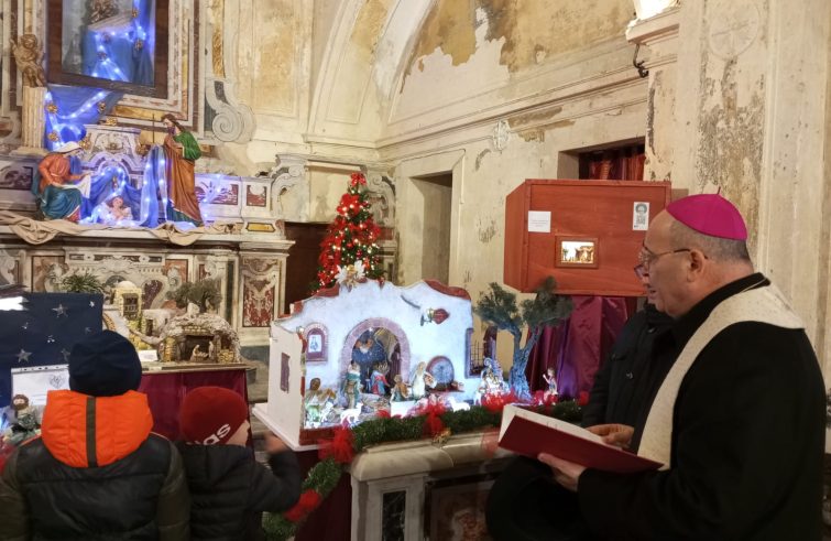 Il vescovo di Castellaneta, mons. Sabino Iannuzzi, in occasione del Natale, ha inviato un messaggio augurale alla comunità ecclesiale diocesana. Nel suo messaggio il vescovo ha ricordato l’ottavo centenario del presepe realizzato a Greccio da San Francesco d’Assisi: “Molto probabilmente – scrive il presule – di ritorno da Roma dove aveva incontrato Papa Onorio III ed aveva ricevuto l’approvazione della Regola per l’Ordine da lui fondato, il Santo di Assisi, con l’aiuto dell’amico Giovanni Velita, volle rappresentare la scena del Bambino nato a Betlemme, così da poter contemplare – in qualche modo – con gli occhi del corpo i disagi a cui fu esposto il neonato per la mancanza delle cose necessarie, di come fu adagiato in una greppia e di come giaceva tra il bue e l’asinello. L’esperienza di quella notte santa di letizia del 1223 fu indicibile”.