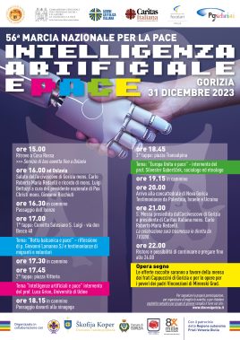 Si svolgerà il 31 dicembre la 56ª Marcia della pace, promossa dalla Commissione episcopale per i problemi sociali e il lavoro, la giustizia e la pace, l’Azione cattolica italiana, la Caritas italiana, il Movimento dei Focolari Italia e Pax Christi Italia. Il titolo è quello del messaggio di Papa Francesco per la 57ª Giornata mondiale della pace del 1° gennaio 2024: “Intelligenze artificiali e pace”.