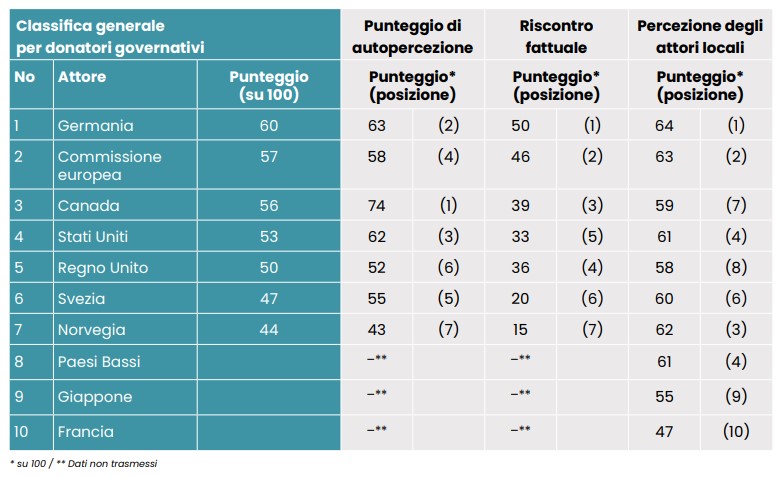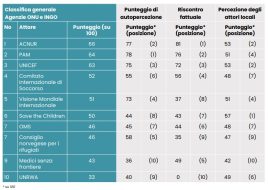 Nelle “conclusioni” dell’ampio rapporto si legge: “le organizzazioni umanitarie internazionali hanno compiuto progressi limitati per quanto riguarda il sostegno all‘azione umanitaria condotta a livello locale e il rispetto degli impegni assunti. Pertanto, è necessario che esse intensifichino il loro impegno per facilitare un cambiamento nel sistema umanitario globale, per renderlo più giusto, efficiente ed efficace”.