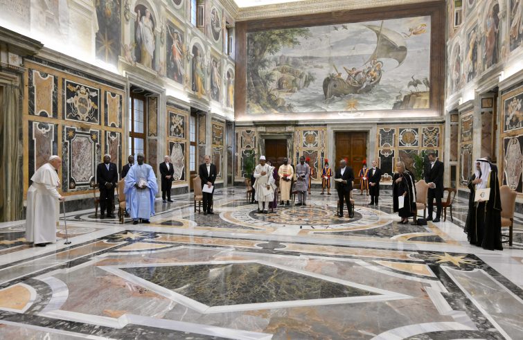 Nella recente esortazione apostolica Laudate Deum, ha ricordato il Pontefice, “ho osservato che per affrontare questa sfida c’è urgente bisogno di una riconfigurazione della diplomazia multilaterale, al fine di dare risposte concrete ai problemi emergenti e di ideare meccanismi globali capaci di far fronte ai cambiamenti ambientali, sanitari, culturali e sociali attualmente in corso (cfr nn. 37-43)”. In questo senso, ha proseguito, “il nobile e paziente lavoro diplomatico, a cui vi dedicate, deve non solo cercare di prevenire e risolvere i conflitti, ma anche consolidare la pacifica convivenza e lo sviluppo umano dei popoli, favorendo il rispetto della dignità umana, difendendo i diritti inalienabili di ogni uomo, donna e bambino e promuovendo modelli di sviluppo integrale economico e umano”.