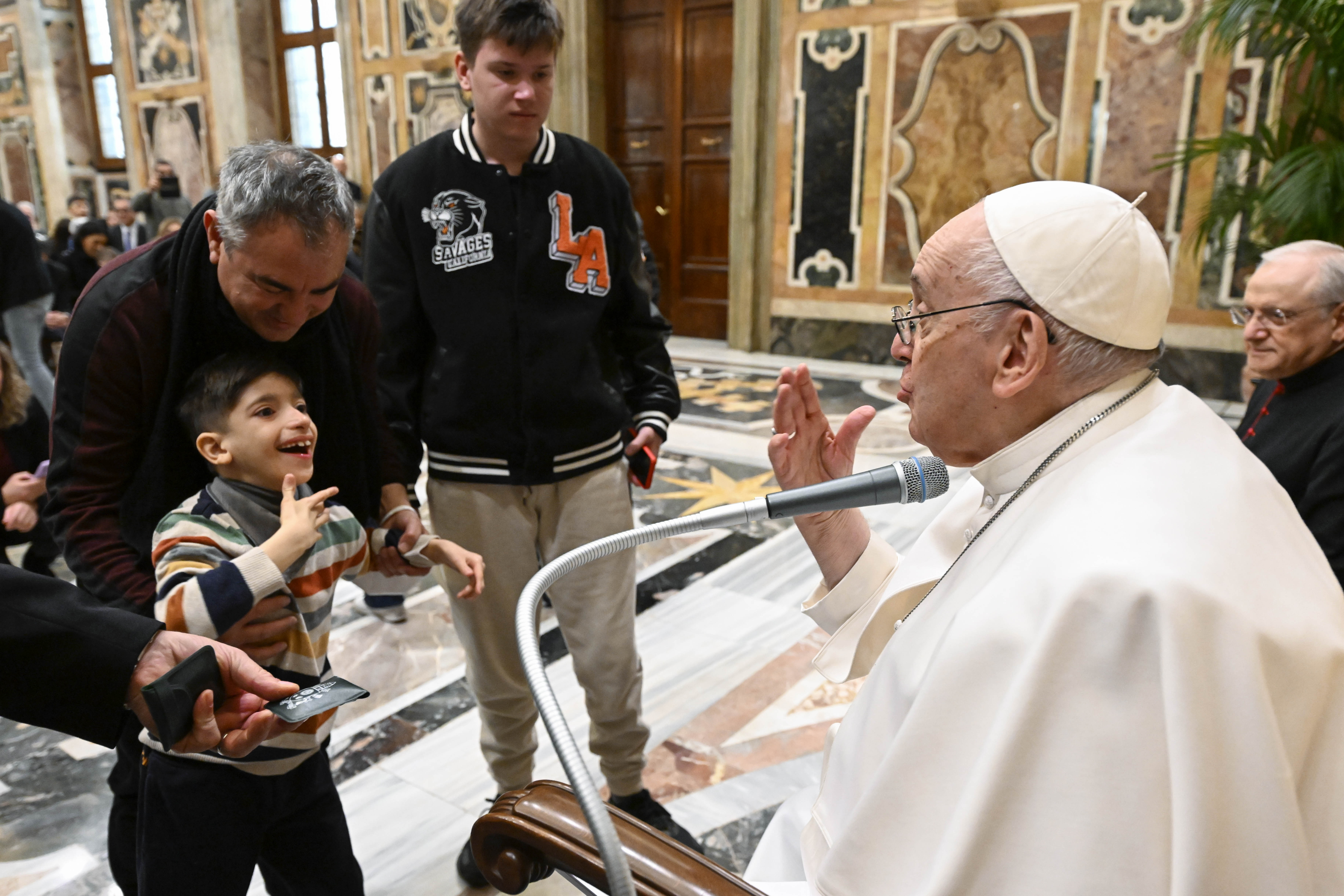 “Quando un papà e una mamma scoprono che il bambino ha una malattia rara, hanno bisogno di conoscere altri genitori che hanno vissuto e vivono la stessa esperienza. È una necessità”. Lo ha detto il Papa, ricevendo in udienza una delegazione della Federazione italiana malattie rare. ”E poiché la patologia è rara, diventa indispensabile riferirsi a un’associazione che mette insieme persone che ogni giorno hanno a che fare con quella malattia”, ha proseguito Francesco: “conoscono i sintomi, le terapie, i centri di cura e così via”. “All’inizio questa è una strada obbligata, una via d’uscita dall’angoscia di trovarsi da soli e disarmati di fronte al nemico”, l’analisi del Papa: “piano piano, però, la via della condivisione diventa una scelta, sostenuta da due motivazioni. La prima è il rendersi conto che serve, ci aiuta, ci offre soluzioni, almeno provvisorie, ci permette di orientarci un po’ nella nebbia di questa situazione. E la seconda motivazione viene dal piacere delle relazioni umane, dal bene che ci fa l’amicizia con persone che fino a ieri non conoscevamo nemmeno e che adesso ci confidano le loro esperienze per aiutarci a portare insieme una condizione molto pesante”. “Questa è l’innocenza creativa dei bambini”, ha detto Francesco a braccio mentre alcuni bambini hanno raggiunto a sorpresa la sua postazione: “E’ meglio questo che il discorso. Questo è il discorso, la vostra spontaneità!”, ha commentato il Papa, chiedendo ad ognuno dei bambini il proprio nome e consegnando a ciascuno il Rosario. “Delle volte noi prepariamo le cose da dire, tutte le idee, ma la realtà parla meglio delle idee”, ha proseguito sempre fuori testo: “Il vero discorso lo hanno fatto loro, avvicinandosi, dando il meglio di loro stessi, prendendo il Rosario…. Non sono scemi, lo fanno bene! E questa è stata la predica”. “Continuare io a parlare, dopo questa predica, non ha senso”, ha detto Francesco consegnando ai presenti il testo preparato per l’occasione: “La vera predica è quello che ci hanno fatto veder loro: con le loro limitazioni e le loro malattie, ci hanno fatto capire che sempre c’è la possibilità di crescere e di andare avanti”.