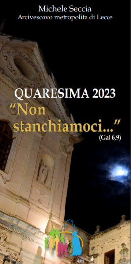 “Cari fratelli e sorelle, la parola dell’apostolo Paolo: ‘Non stanchiamoci di fare il bene (Gal 6,9)’ guidi la riflessione per questa Quaresima in cui la liturgia, attraverso l’ascolto delle letture domenicali, ci propone una serie di catechesi che ci conducono a riscoprire la bellezza dell’essere battezzati, chiamati dalla Trinità a diffondere nel mondo la luce della vita nuova in Cristo Gesù”. Sono queste le parole con le quali mons. Michele Seccia, arcivescovo di Lecce, apre il suo messaggio per la Quaresima 2023, che segna anche l’inizio della sua visita pastorale prevista per il 26 febbraio con la messa in cattedrale, per la quale il presule dichiara di volersi impegnare con tutte le sue energie, senza limitare la grazia che anima ognuno e che a volte è soffocata dalle tentazioni. “Avverto serpeggiare nella società civile, così come nelle nostre comunità una certa acquiescenza, un senso di scoraggiamento e di stanchezza, ma questa è una tentazione e un male nascosto che va immediatamente scacciato”, osserva il presule che invita a guardare all’energia che anima le parrocchie, ispiratrici di una Quaresima come tempo privilegiato per la guarigione dell’anima, rinnovamento dei propositi di conversione e di santità, non solo personale ma comunitaria. “La comunità parrocchiale non sia una monade isolata, bensì una cellula vitale della comunità diocesana e della Chiesa universale. Proprio per questo, rifuggiamo dalla tentazione di negare il nostro apporto convinto ed autentico al Sinodo partecipando ai diversi appuntamenti e vivendolo come stile di vita pastorale”, prosegue mons. Seccia sollecitando la creatività pastorale di ogni comunità cristiana, ricordando l’esempio di don Ugo De Blasi, l’importanza della preghiera e della comunità. “Superiamo, dunque, l’individualismo compiendo gesti di comunione nella preghiera. Essa sia per tutti noi lo strumento più idoneo per raggiungere anche chi, lontano dal Salento, vive già da un anno il terrore della guerra: pensiamo ai nostri fratelli dell’Ucraina ma anche alla Moldavia cui siamo vicini con sentimenti di cristiana fraternità. La nostra preghiera, per tutta la Quaresima, sia, senza stancarci mai, un’incessante invocazione di pace. Non stanchiamoci di allontanare il male dalla nostra vita”. L’arcivescovo ricorda il valore del digiuno corporale e l’importanza di coltivare la tenerezza, l’accoglienza, l’amore e la gioia, favorendo i rapporti umani reali e non dimenticando il bene prezioso che sono la confessione e la carità verso i poveri, assieme all’attenzione verso i più piccoli e indifesi. “Proviamo ad essere tutti più generosi: ogni nostra rinuncia diventi, soprattutto per chi non può metterlo a tavola ogni giorno, il pane quotidiano che tante volte invochiamo nel Padre Nostro”, dichiara mons. Seccia che ricorda l’impegno preso dalla diocesi per questa Quaresima nel donare alla Caritas per il sostegno delle azioni di volontariato e partecipando alla colletta nazionale lanciata dalla Cei in aiuto alle popolazioni colpite dal terremoto in Turchia e in Siria.