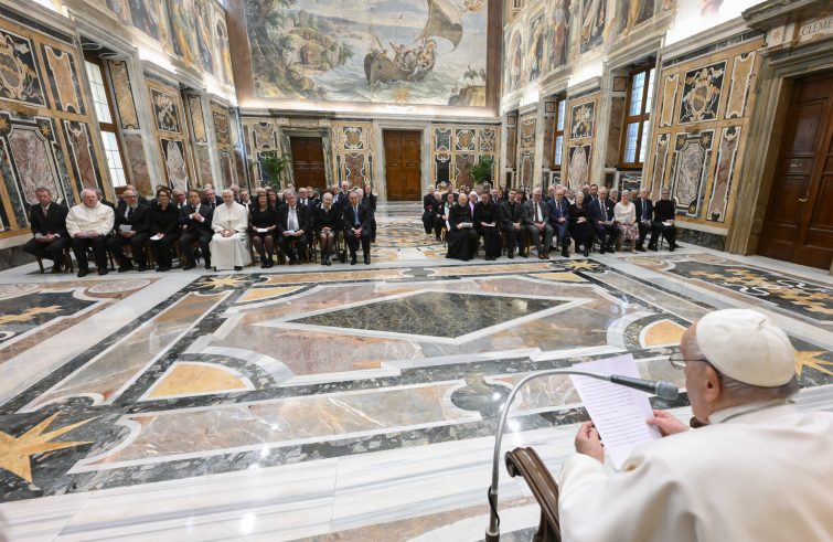 “Voi siete ancora oggi testimoni della generosità e della carità che animavano i cuori dei vostri predecessori, che non hanno avuto paura di spendere la vita per amore della Chiesa”. È l’omaggio del Papa ai membri dell’associazione “Pro Petri Sede”, ricevuti in udienza.” Oggi la chiamata a donarsi per amore dei nostri fratelli e sorelle non è meno urgente: tanti di loro soffrono a causa della guerra, della violenza, dell’esclusione, della povertà materiale e spirituale”, le parole di Francesco, secondo il quale “è significativo che il vostro pellegrinaggio coincida con l’inizio della Quaresima, tempo favorevole che ci chiama a convertirci per passare dalla schiavitù dell’egoismo alla libertà di amare e servire Dio e i fratelli”. “Leggendo gli Atti degli Apostoli, vediamo come nella Chiesa nascente la generosità dei cristiani si manifestava tra di loro e verso la comunità con grande solidarietà”, l’esempio scelto dal Papa: “Erano capaci di mettere tutto in comune per sostenere i fratelli e le sorelle più fragili. Avevano capito di essere gli amministratori temporanei dei loro beni: in effetti, tutto ciò che possediamo è dono di Dio e dobbiamo lasciarci illuminare da lui nella gestione dei beni ricevuti. Il suo spirito, fonte di generosità, ci spingerà sempre a dare a chi è nel bisogno, a combattere la povertà con ciò che lui ci dona. Perché il Signore ci dà in abbondanza affinché a nostra volta possiamo dare noi stessi”. “Mettiamo in pratica l’appello a operare il bene verso tutti, prendendoci il tempo per amare i più piccoli e indifesi, gli abbandonati e disprezzati, chi è discriminato ed emarginato”, l’invito finale, insieme ad un ringraziamento per il dono di un suo ritratto realizzato da uno dei presenti.