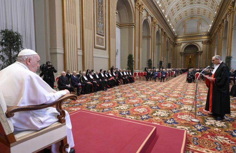 La giustizia è “una virtù da coltivare mediante l’impegno di conversione personale e da esercitare insieme alle altre virtù cardinali della prudenza, della fortezza e della temperanza”. Lo ha detto il Papa, che oggi ha presieduto l’inaugurazione del 94° Anno giudiziario del Tribunale dello Stato della Città del Vaticano. “Questa virtù – ha spiegato nel suo discorso – è affidata in modo eminente alla responsabilità di quanti sono impegnati nell’ambito giudiziario, per consentire il ristabilimento della pace violata fra i diversi soggetti della comunità in contesa fra loro e in seno alla comunità”. In tale prospettiva “operano i Tribunali dello Stato della Città del Vaticano, che svolgono a vantaggio della Santa Sede un ruolo prezioso quando si tratta di dirimere contese di natura civile o penale”. Controversie che “devono essere giudicate in base a un complesso intreccio di fonti canoniche e civili, qual è quello previsto dall’ordinamento vaticano, la cui applicazione richiede specifiche competenze”. Negli ultimi anni, ha fatto notare il Pontefice, “queste controversie giuridiche e i relativi processi sono aumentati, come pure è aumentata, in non pochi casi, la gravità delle condotte che vengono in rilievo, soprattutto nell’ambito della gestione patrimoniale e finanziaria”. Di qui una precisazione: “Il problema non sono i processi, ma i fatti e i comportamenti che li determinano e li rendono dolorosamente necessari. Infatti, tali comportamenti, da parte di membri della Chiesa, nuocciono gravemente alla sua efficacia nel riflettere la luce divina”.